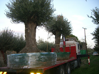 | Μεγάλα Δέντρα Ελιάς σε φόρτωση, σε ειδική συσκευασία. ( big olive tree - ulivi centenari - grandes olivos ).